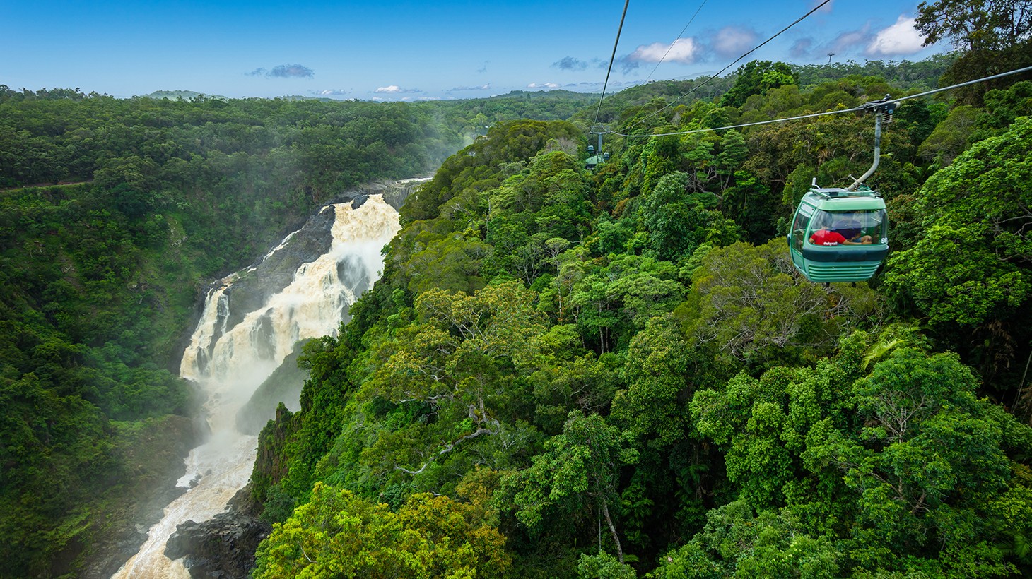 Experience the sheer tranquillity of the world’s oldest tropical rainforest. Hop onboard a one-way Skyrail Rainforest Cableway and glide over the lush canopy with panoramic views of Barron Gorge and the UNESCO World Heritage-listed Wet Tropics of Queensland. Take your time to explore Kuranda or see Barron Falls and Red Peak up close before enjoying a one-way Kuranda Scenic Railway journey through stunning tunnels and bridges. One-way transfers to the cableway are available from selected Cairns, Smithfield and Freshwater hotels, ensuring a seamless start to your adventure.