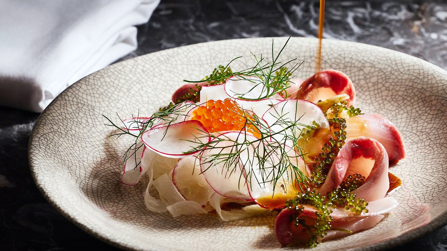 - Course Two: Hiramasa kingfish, wasabi mayo, grapefruit, sea grapes, ponzu