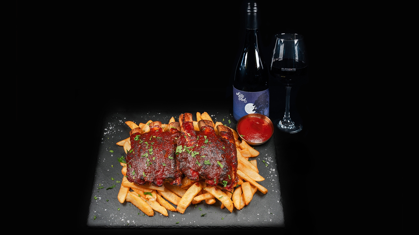 1kg Beef Back Ribs Platter, Chips & Wine Lunch for Two at Elements Bar & Grill