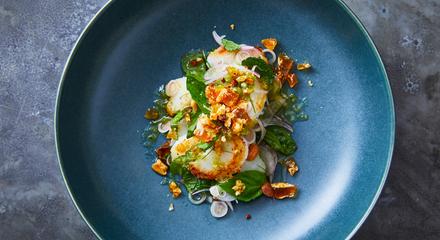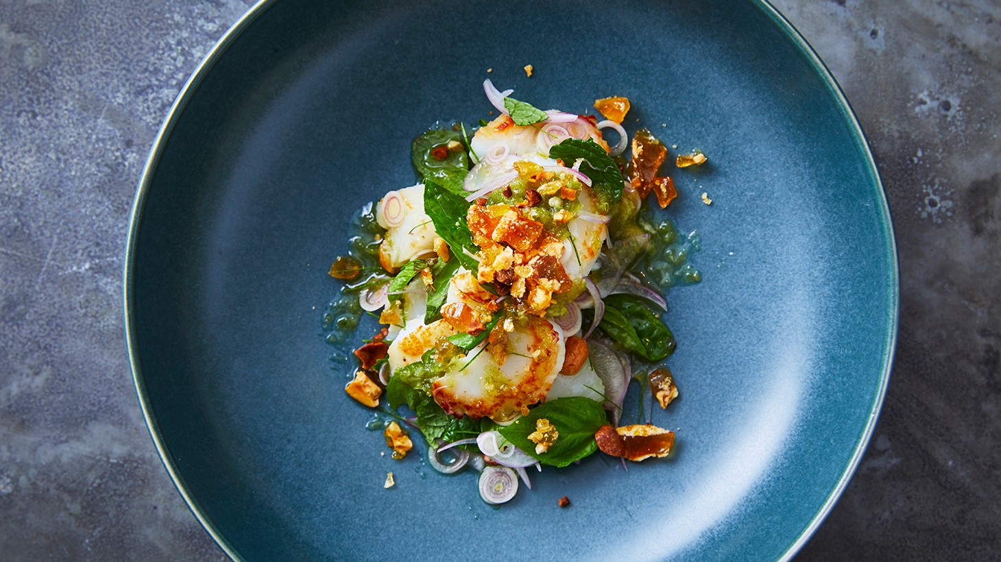 - Course Two: Salad of Gregory island tiger prawns with Asian celery, Thai basil, and peanut chilli caramel