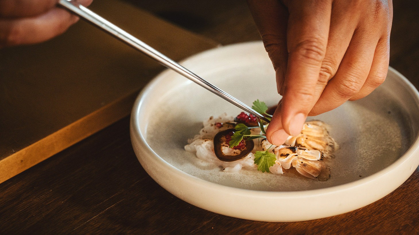 - Crunchy Akoya (pearl oysters) with fresh yuzu, salmon roe, ponzu dressing