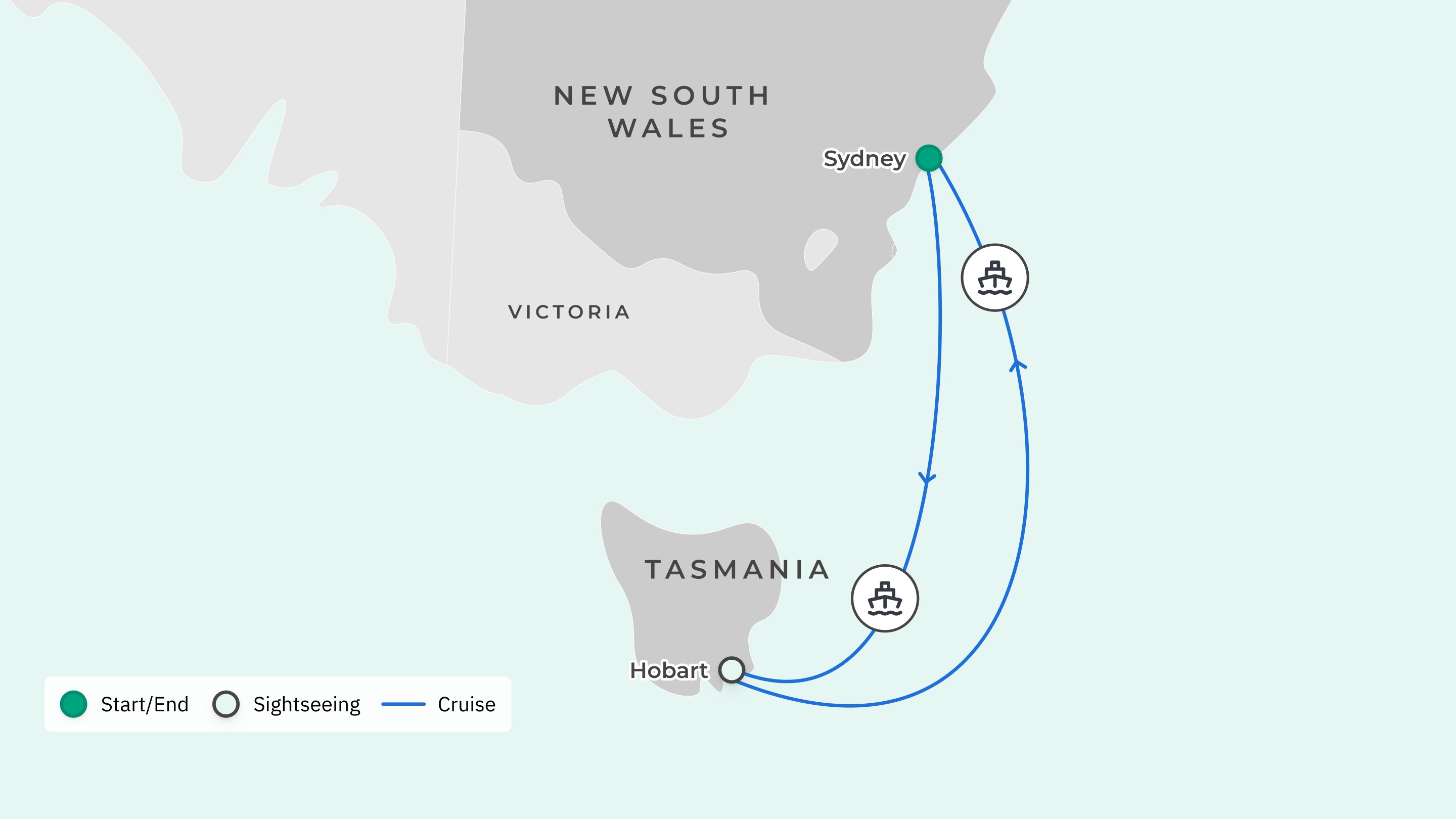 Your journey takes you to: Sydney, Australia – Hobart – Sydney.