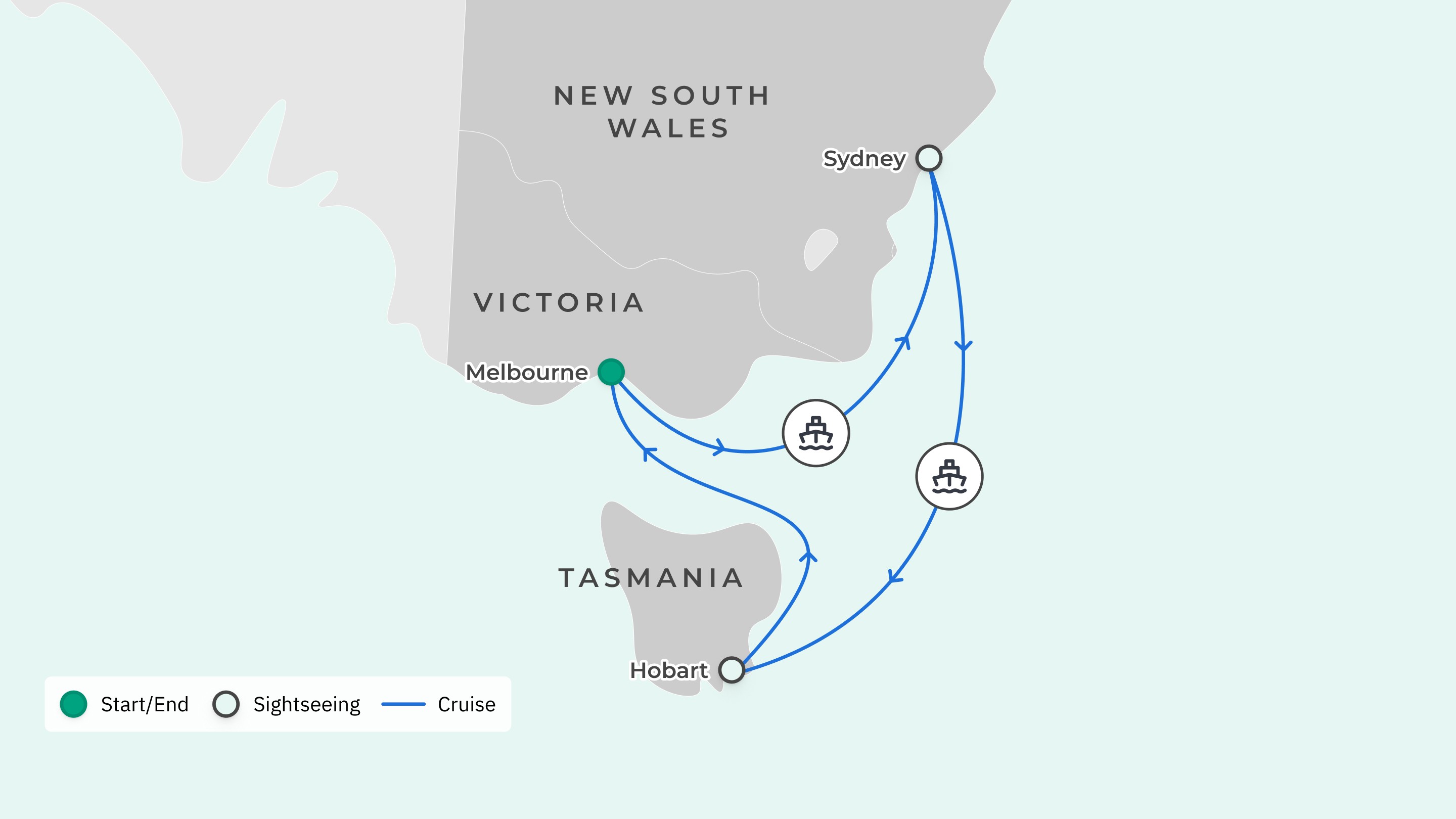 Your journey takes you to: Melbourne, Australia – Sydney – Hobart – Melbourne.