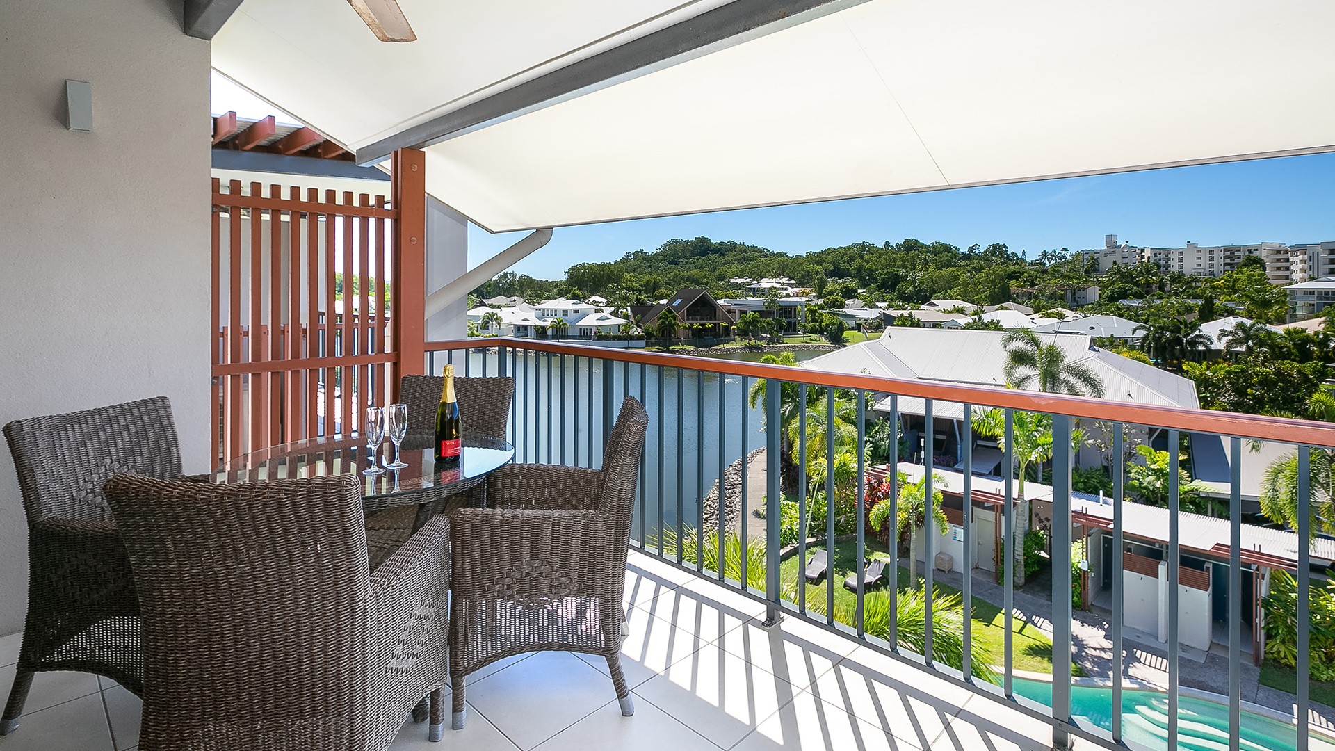 Stay in a modern and bright Studio Apartment, featuring 40sqm of space that includes a king bed (or two single beds) and modern amenities including a well-equipped kitchenette with fridge, benchtop hot plate and microwave, an ensuite bathroom, TV with Foxtel and spacious balcony with lagoon/pool views.