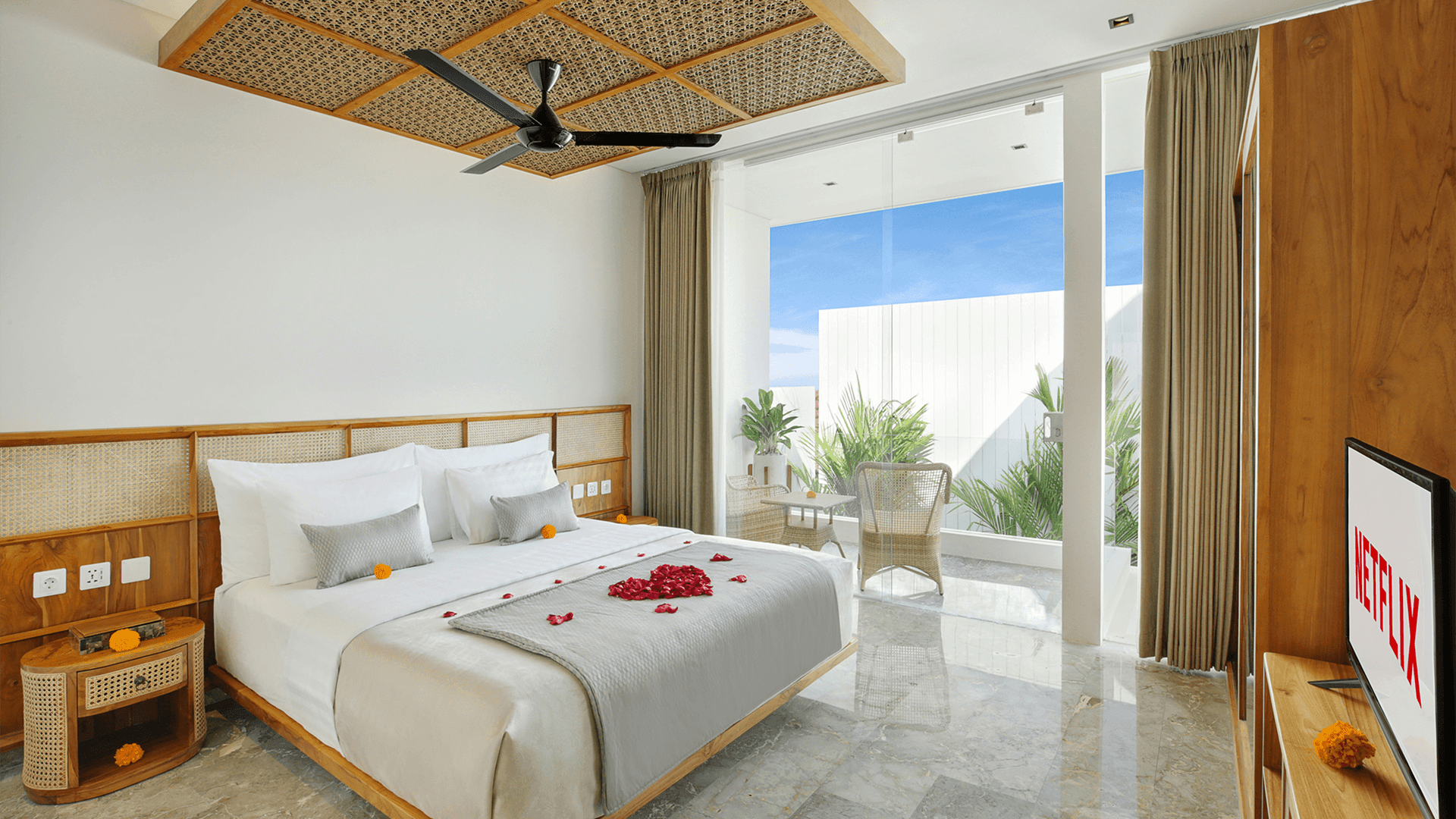 A centrally located oasis, Eight Palms Villa by Ini Vie Hospitality is conveniently positioned near Legian Beach and only a 15-minute drive from Seminyak. Enjoy easy access to Bali’s wide sandy beaches and vibrant nightlife from your private villa, with many dining and entertainment outlets located within an easy 10-minute drive.