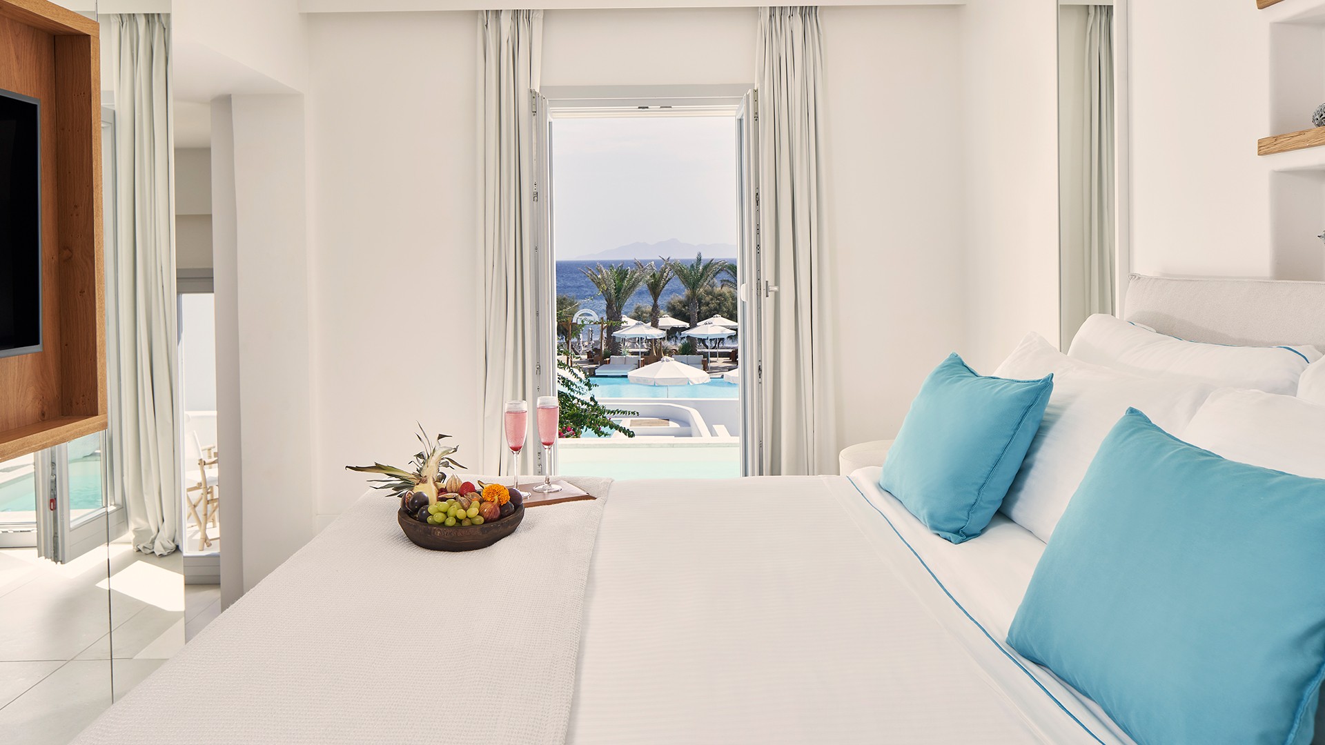 Located near the black sands of Monolithos, Nikki Beach Resort & Spa Santorini offers an idyllic retreat on the southeastern coast of Santorini. Situated just eight kilometres from the capital of Fira, the resort allows guests to immerse themselves in the island’s captivating beauty while remaining within easy reach of its cultural and cosmopolitan heart. Ancient Thera and the Museum of Prehistoric Thera beckon, just a short 15-minute drive away.