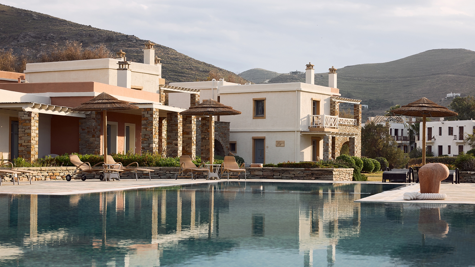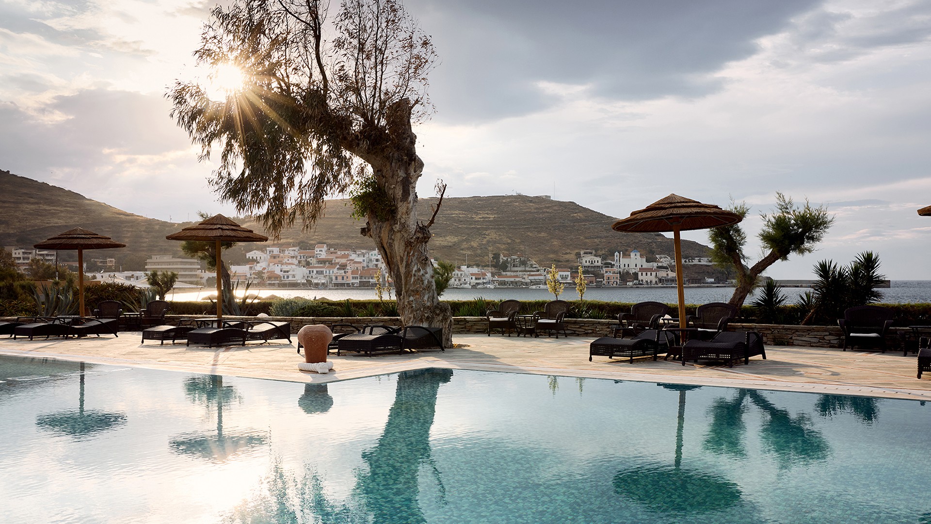Nestled on the enchanting island of Kea, this hotel offers a front-row seat to the sparkling blue waters of the Aegean Sea. Surrounded by verdant Mediterranean gardens and moments from idyllic beaches, it is a true haven of tranquility and timeless beauty. The resort is a 5-minute drive from Korissia port, which is reached by a 70-minute ferry ride from Lavrio Port. Lavrio Port is located approximately a 30-minute drive from Athens International Airport (ATH). Airport transfers are not included in your package, please plan accordingly.