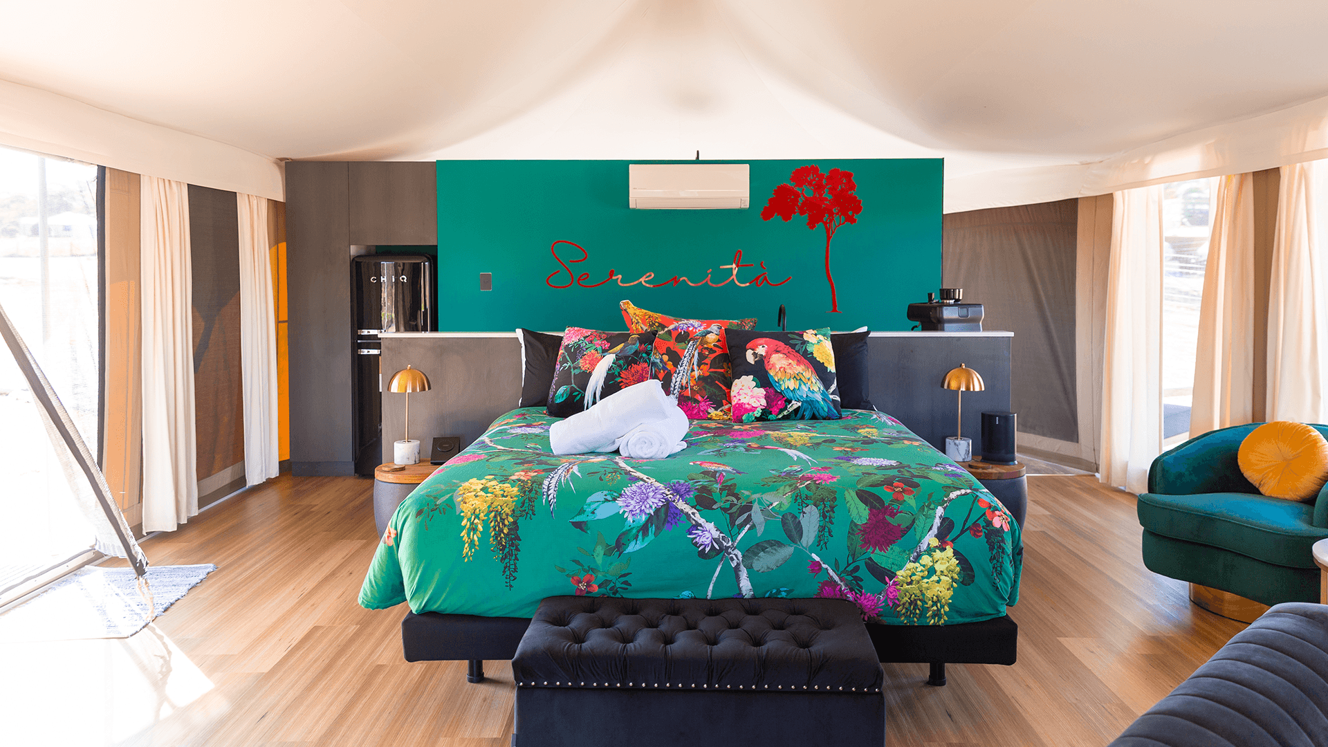 - Each luxury glamping tent has the same amenities but differing decor. As such, Serenità Stanthorpe cannot guarantee which tent will be allocated to guests.
