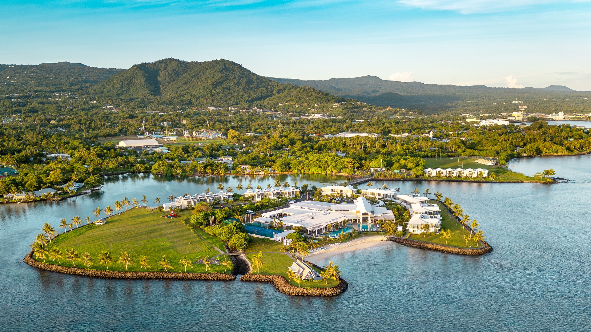 Located on an exclusive island just off Samoa’s main island, Upolu, Taumeasina Island Resort overlooks the Pacific Ocean and the surrounding turquoise lagoon. It is also conveniently located just a five-minute drive from the capital city of Apia, where you’ll find a range of vibrant dining options and shopping destinations. The resort is located approximately a 60-minute drive from Faleolo International Airport (APW). Return airport transfers are included in your package, please see Fine Print for details.