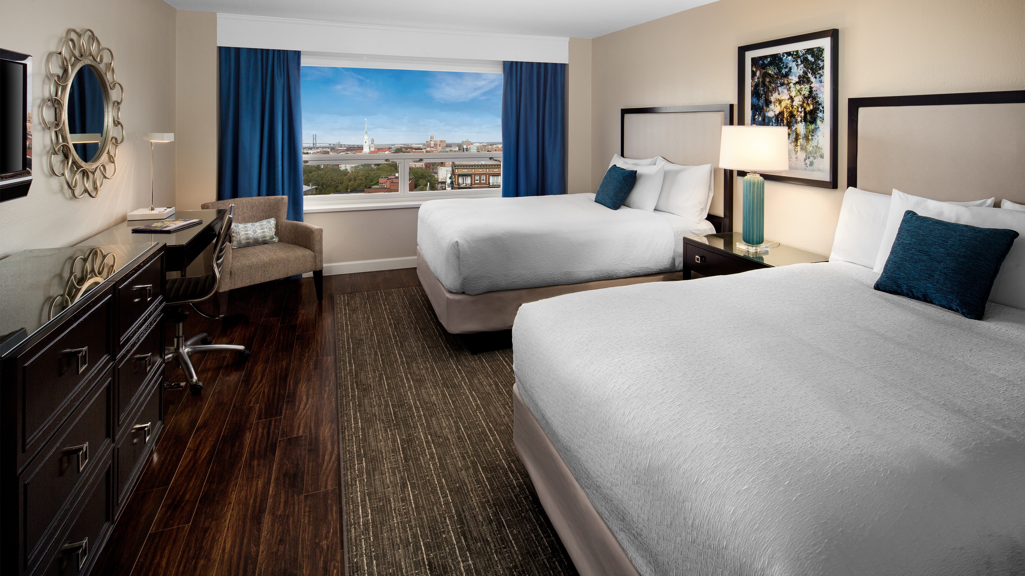 Located in the heart of Historic Savannah, the DeSoto Savannah is surrounded by charming squares, fascinating museums such as Owens-Thomas House and cultural landmarks like Forsyth Park. Forsyth Park’s iconic fountain is a leisurely 10-minute stroll away and Tybee Island’s golden sands are a 30-minute drive away. The hotel is located approximately a 20-minute drive from Savannah/Hilton Head International Airport (SAV). Airport transfers are not included in your package, please plan accordingly.