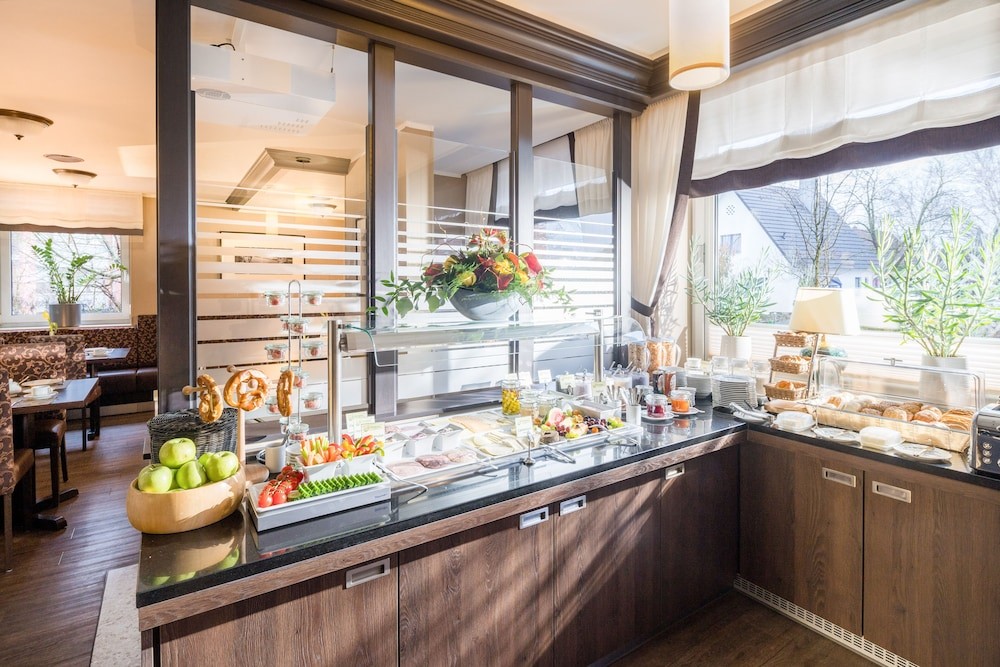 At Hotel Stadtidyll, enjoy a satisfying meal at the restaurant. A complimentary buffet breakfast is served daily from 8:00 AM to 10:00 AM.
