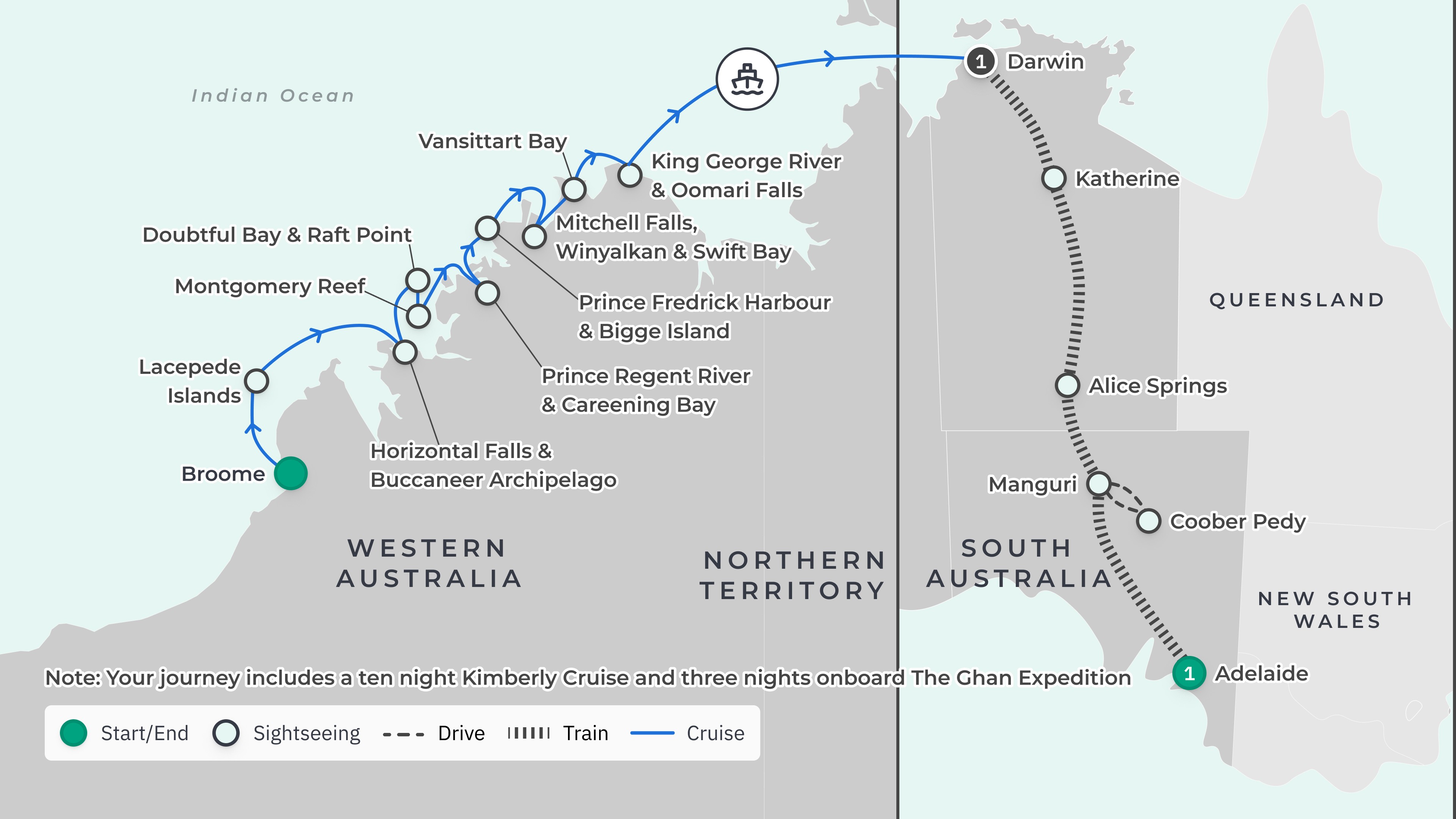 Limited Time Offer: Coral Expeditions Kimberley Cruise with BONUS 4-Day Ghan Expedition & Post-Cruise Stay